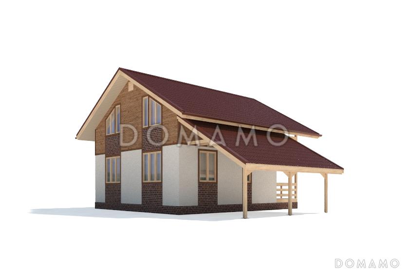 Компактный деревянный дом с четырьмя спальнями подойдет для семьи из 4-5 человек. Коттедж строится из клееного бруса, снаружи его можно оформить деревянной вагонкой, облицовочным кирпичом или просто оштукатурить.