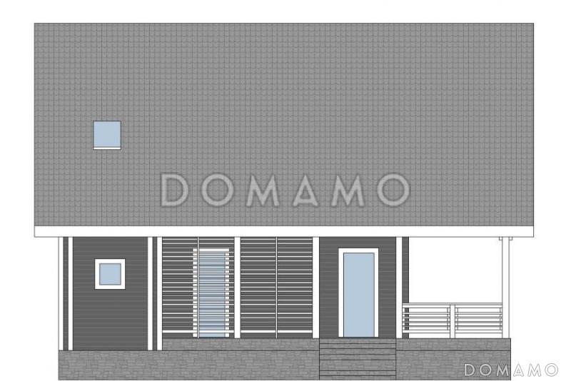 Одноэтажный дом с мансардой для комфортной жизни семьи из 4-6 человек. Материал стен – кирпич, но здание полностью обшито деревянной вагонкой. Дерево используется и для ограждений террасы. Использование древесины, а также широкая крыша над террасой вдоль трёх стен дома и панорамные окна – элементы, подчеркивающие архитектурный стиль строения – шале.