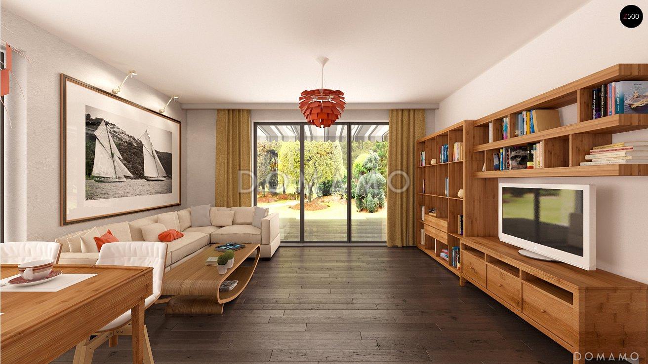 Одноэтажный коттедж с тремя спальнями и двумя санузлами станет уютным жильем для семьи из 3-4 человек. Кирпичный дом оштукатурен, а стены террасы и входа обшиты фасадными панелями контрастного оттенка.