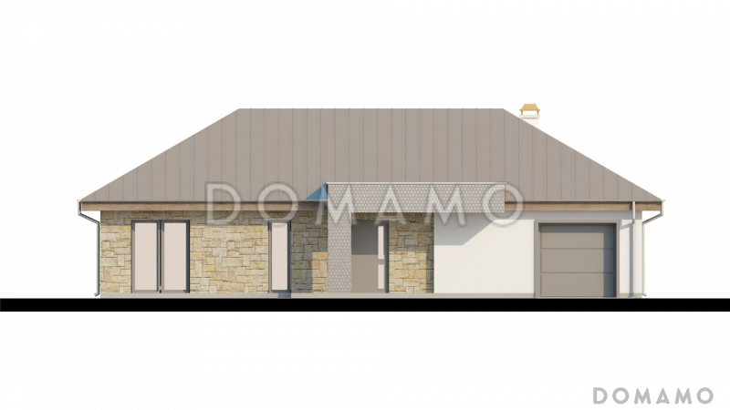 Компания Domamo предлагает проект одноэтажного дома из газобетона с прямоугольным эркером в современном архитектурном исполнении и со встроенным гаражом D2486. Общая площадь - 133 м2, размер - 17.34х10.44 м. Фундамент - ленточный заглубленный из фбс, кровля - металлочерепица, внешняя отделка - мокрая штукатурка облицовка камнем. Для заказа проекта или внесения изменений свяжитесь с нами с помощью форм обратной связи на сайте или по телефону +7 (831) 231-05-02.