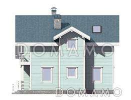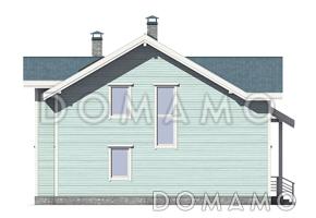 Проект необычного загородного дома с мансардой, который отлично подойдет для проживания семьи из трех – четырех человек. Среди остальных коттедж отличается интересными решениями в отделке фасада и планировке. Дом облицован деревянной вагонкой светло-голубого оттенка, а крыша покрыта черепицей более глубокого цвета. На первом этаже расположена гостиная с камином, которая соединена с кухней, спальня и техническое помещение. Второй этаж включает в себя три спальни, гардеробную и балкон.
