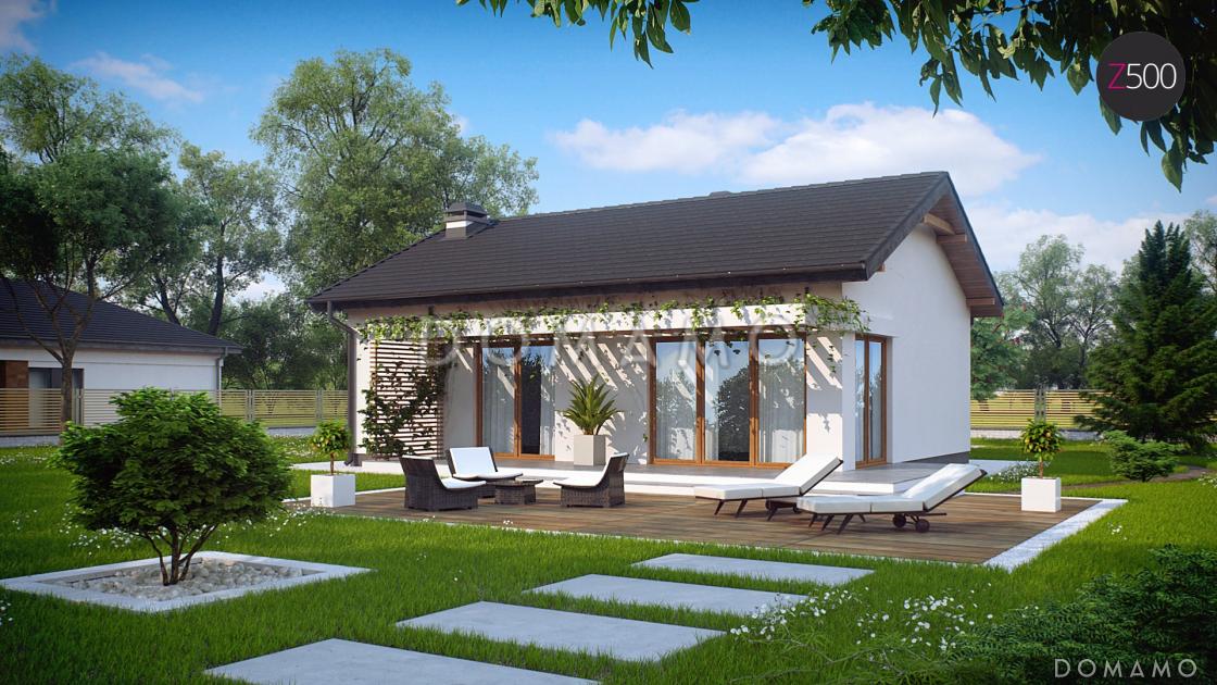 Проект компактного одноэтажного дома из газобетона с двумя спальнями, изолированной кухней и торцевым входом / 1 Проект компактного одноэтажного дома из газобетона с двумя спальнями, изолированной кухней и торцевым входом / 2