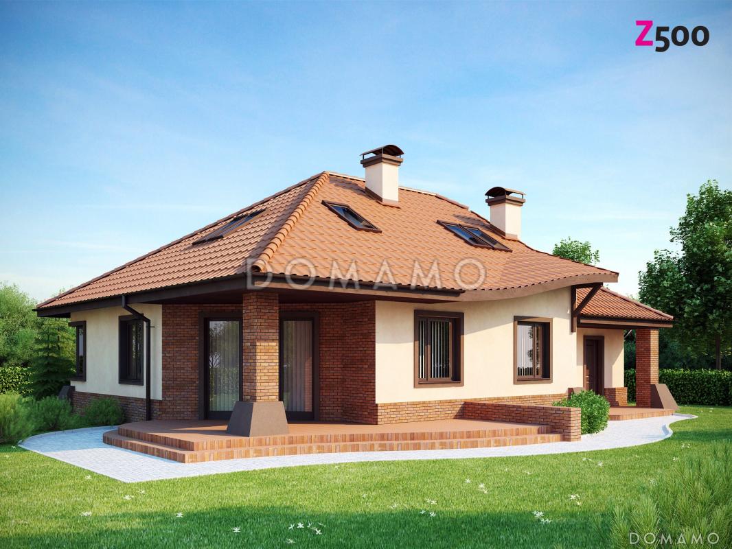 Проект просторного одноэтажного мансардного дома из кирпича с кабинетом, гаражом и комнатой над ним / 1 Проект просторного одноэтажного мансардного дома из кирпича с кабинетом, гаражом и комнатой над ним / 2