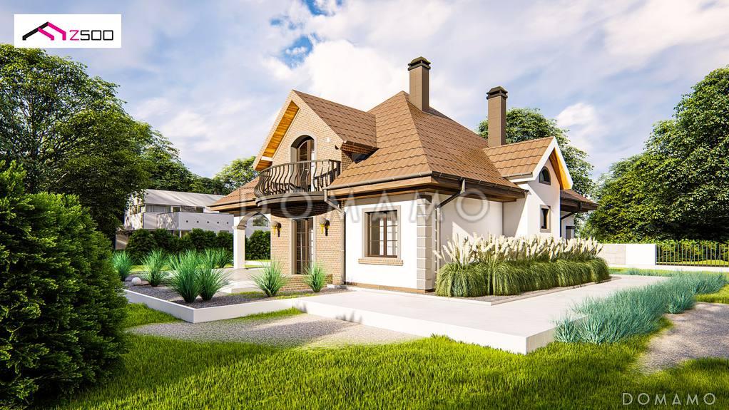 D4791 Проект мансардного дома из кирпича с тремя спальнями, кабинетом и красивыми балкончиками