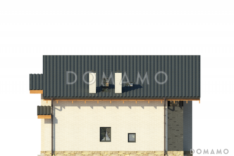 Двухэтажный коттедж, выполненный в современном стиле, который станет отличным местом для проживания семьи из трех-четырех человек. Внешний вид здания сразу бросается в глаза за счет использования двух контрастных цветов в отделке и односкатной крыши. Основным украшением постройки можно назвать панорамные окна у выхода на террасу и на втором этаже. На первом этаже здания расположена кухня-столовая с выходом в просторную гостиную, технические помещения и жилая комната, которую можно отвести под гостевую. Второй этаж включает в себя три спальни, в двух из которых предусмотрены выходы на балкон, а также сауну.