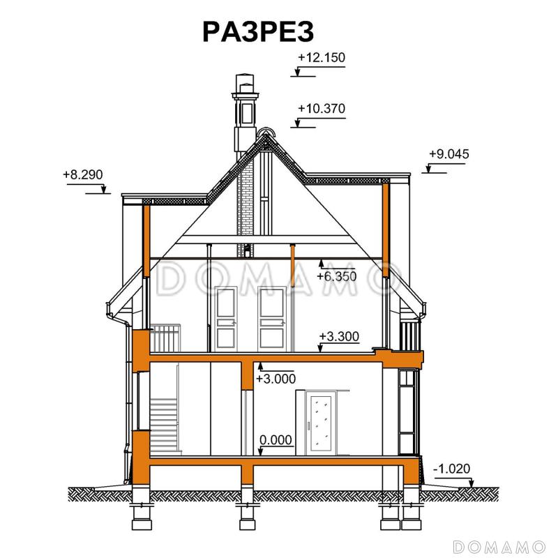 Оригинальный дом с элементами фахверка для семьи из трех-четырех человек. Передний фасад украшает открытая терраса, переходящая в крыльцо, углубленное в основной объем дома и защищенное от непогоды.