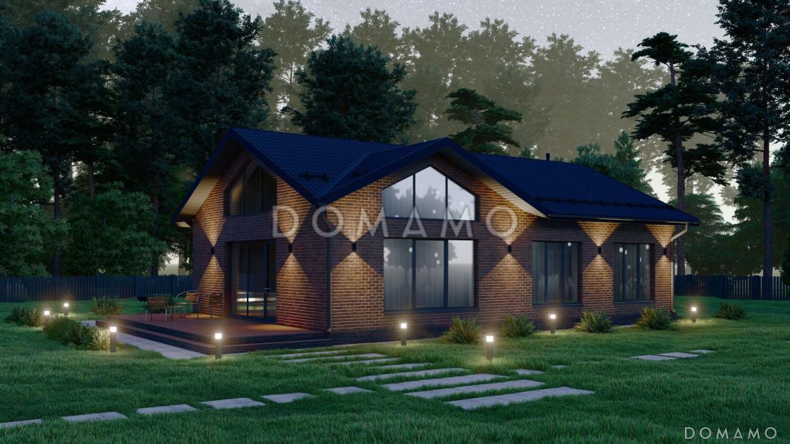 Один этаж, большие площади остекления, терраса, классический стиль – это идеальный пример небольшого и экономичного дома.