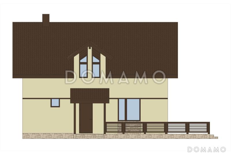 Проект мансардного дома из кирпича с крытой террасой, вторым светом и островным камином / 1