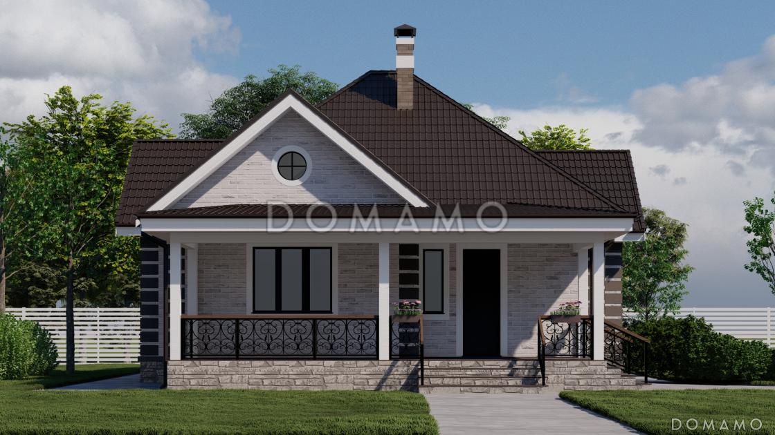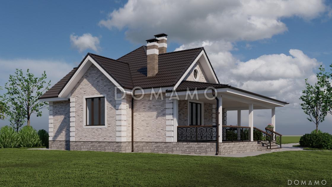 D6399 Проект одноэтажного кирпичного дома с двумя спальнями и просторной террасой