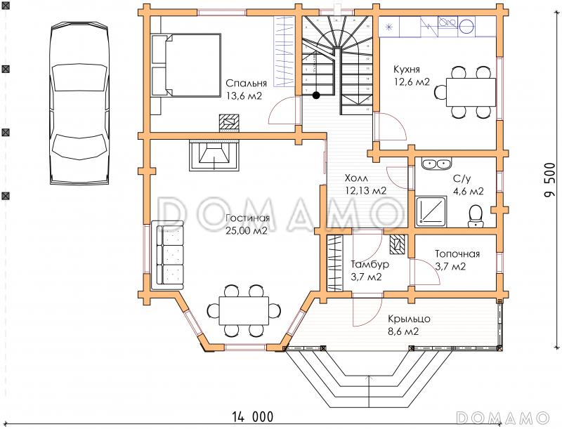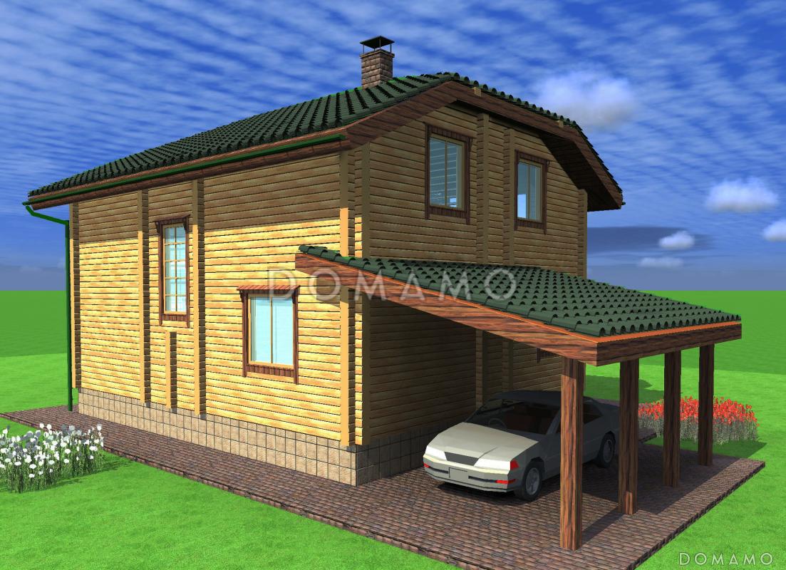Проект дома с мансардой, который хорошо подойдет для семьи из четырех-пяти человек. Включает в себя четыре спальни, просторную гостиную, кухню и гардеробную комнату. Такая постройка из бруса станет хорошим решением для загородного и дачного участка. Благодаря пристроенному навесу удастся организовать парковочное место или зону для семейного отдыха. Эркер на втором этаже выполняет не только декоративную, но и практическую функцию — с его помощью обеспечивается естественная освещенность жилых комнат. Проект наверняка понравится ценителям практичности и классического стиля.