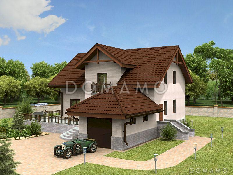 D115 Проект дома с треугольным эркером и гаражом на одну машину