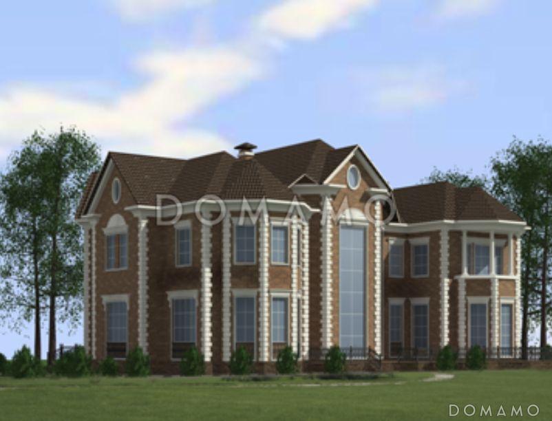 Проект особняка площадью 565 кв.м подходит для строительства загородного особняка на семью из 4-6 человек. Здание из кирпича украшают русты по углам, колонны на балконе, эркеры и аккуратные овальные чердачные окошки.