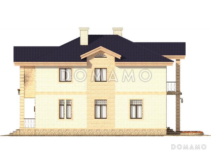 Представительная усадьба с парадным фасадом, облицованным кирпичом и коваными ограждениями, для постоянного проживания семьи из 4-5 человек.
