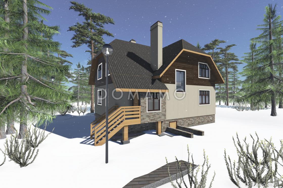 Проект кирпичного дома с цокольным и мансардным этажами, террасой и сауной / 1 Проект кирпичного дома с цокольным и мансардным этажами, террасой и сауной / 2