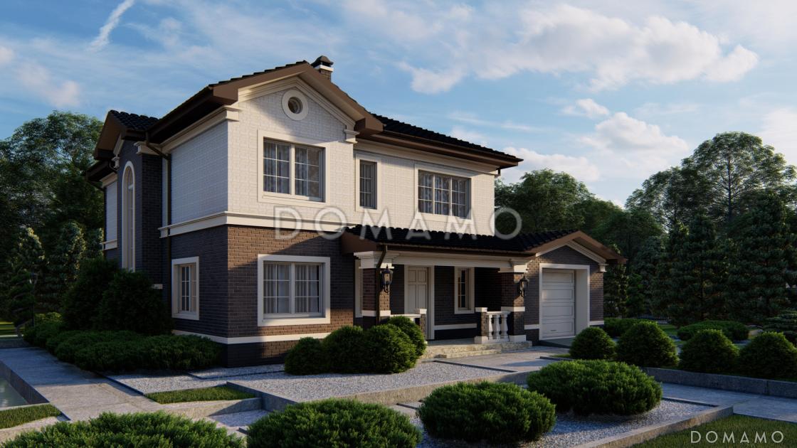 D4740 Проект дома с мастер-спальней с выходом на террасу, гостиной с камином, кладовой, гаражом