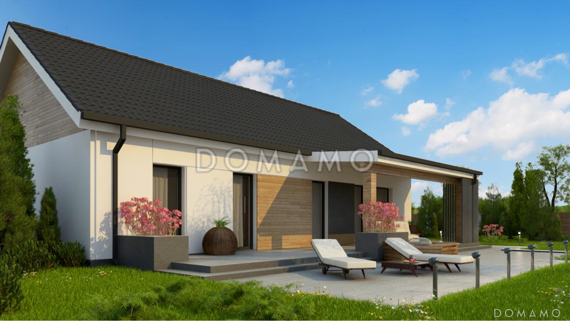 Компания Domamo предлагает проект загородного дома с удобной планировкой, мастер-спальней, ванной с окном, террасой D5047. Общая площадь - 125 м2, размер - 15.41х9.21 м. Фундамент - ленточный монолитный, кровля - металлочерепица, внешняя отделка - деревянная вагонка мокрая штукатурка. Для заказа проекта или внесения изменений свяжитесь с нами с помощью форм обратной связи на сайте или по телефону +7 (831) 231-05-02.