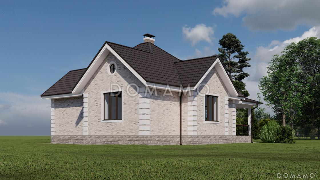 D5141 Проект одноэтажного каркасного дома с двумя спальнями и просторной террасой