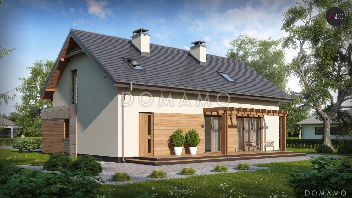 Проект уютного дома с мансардными окнами, балконом, террасой, гаражом на одну машину / 1 Проект уютного дома с мансардными окнами, балконом, террасой, гаражом на одну машину / 2