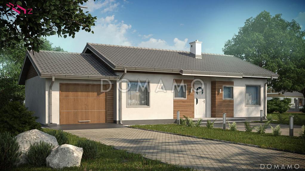 D5391 Проект одноэтажного дома с двухскатной крышей, гаражом, ванной с окном