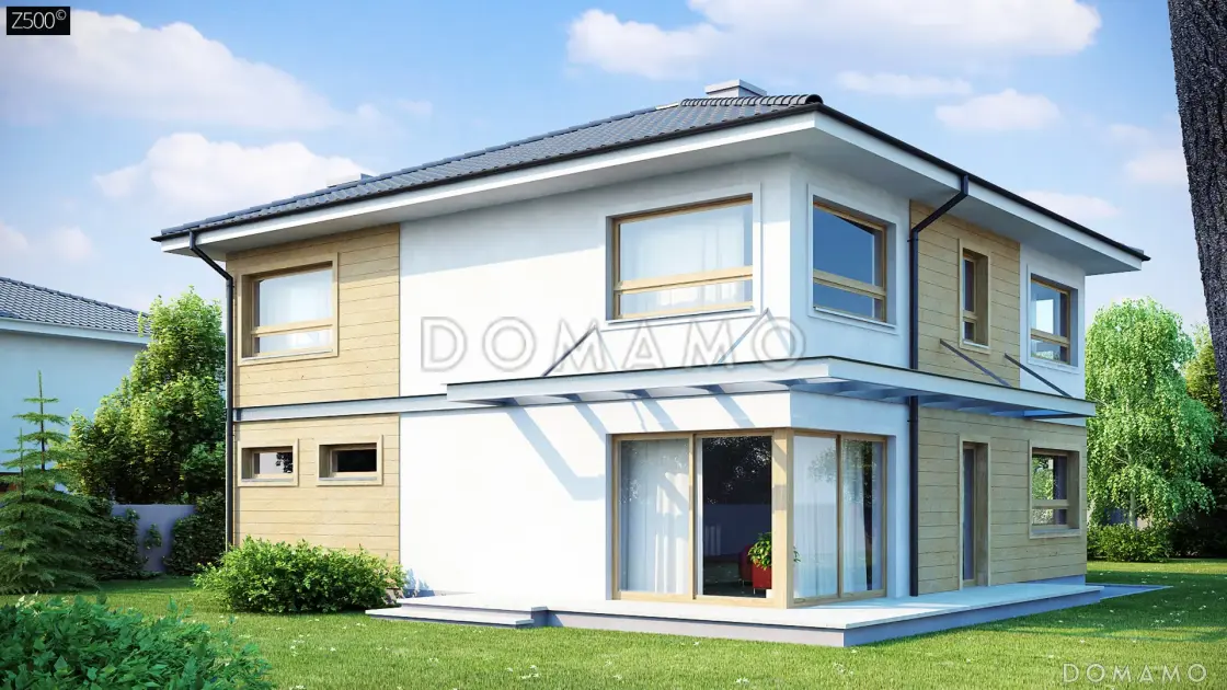Компания Domamo предлагает проект двухэтажного дома из газобетона с 4 спальнями, подвалом и гаражом на 2 автомобиля D6656. Общая площадь - 315 м2, размер - 14.11х11.61 м. Фундамент - ленточный монолитный, кровля - металлочерепица, внешняя отделка - деревянная вагонка мокрая штукатурка. Для заказа проекта или внесения изменений свяжитесь с нами с помощью форм обратной связи на сайте или по телефону +7 (831) 231-05-02.