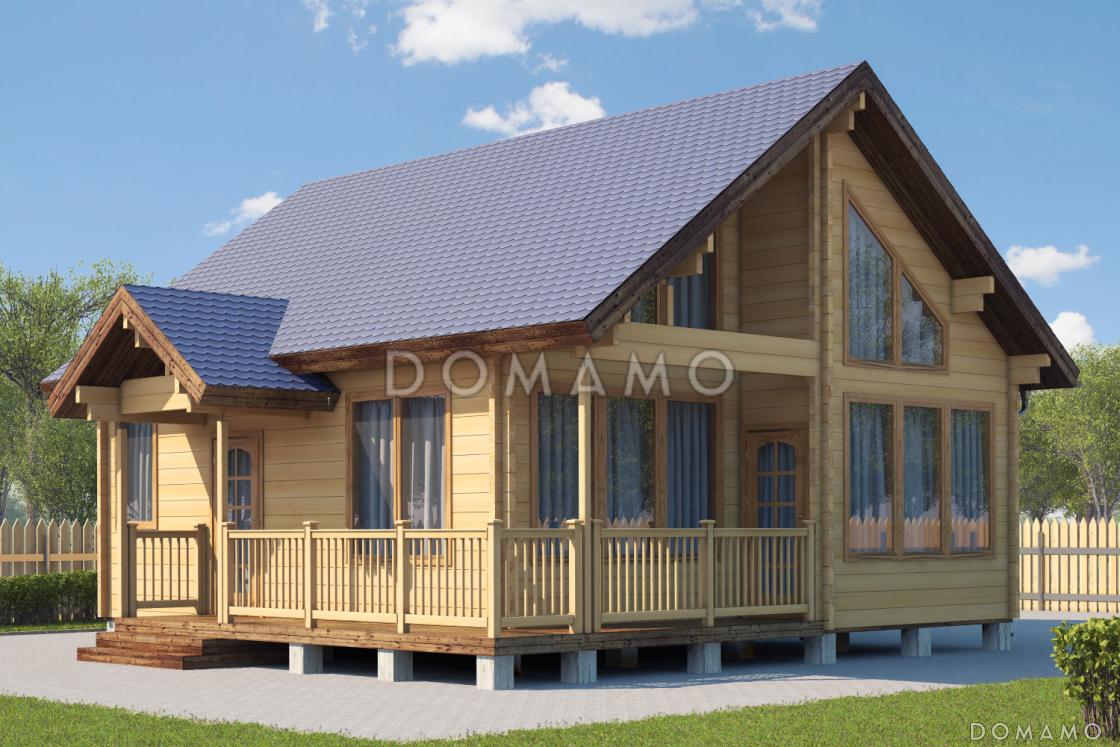 Проект дома из клееного бруса со вторым светом и двумя спальнями на мансардном этаже / 1 Проект дома из клееного бруса со вторым светом и двумя спальнями на мансардном этаже / 2